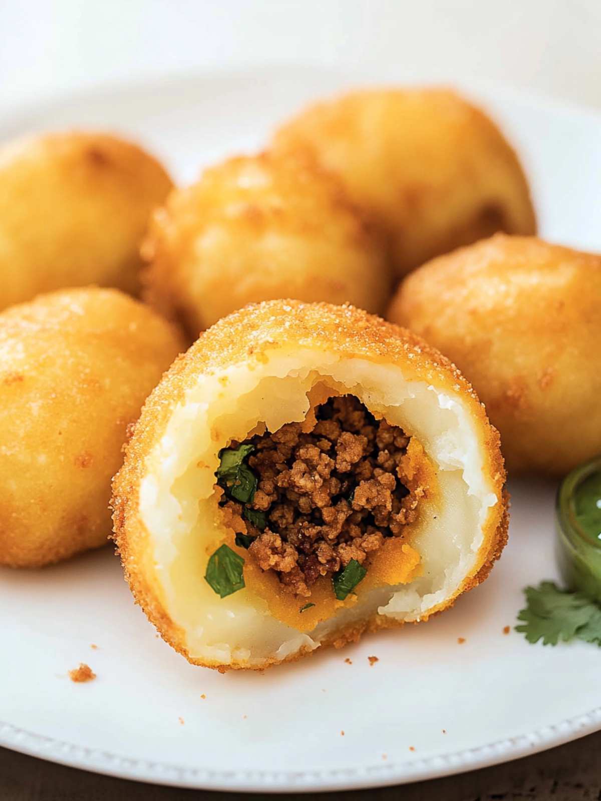 Creamy mashed potatoes, seasoned with love, wrapped around a perfectly spiced beef picadillo center. Fried to a golden crisp, these Rellenos de Papas are warm, comforting, and dangerously delicious. The perfect appetizer or party addition — they always disappear first.